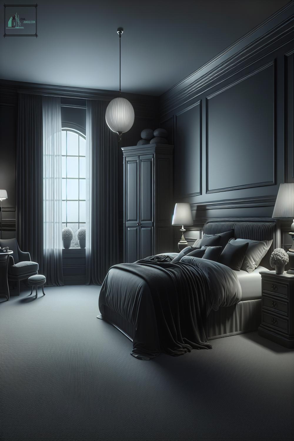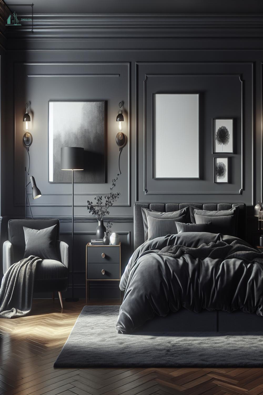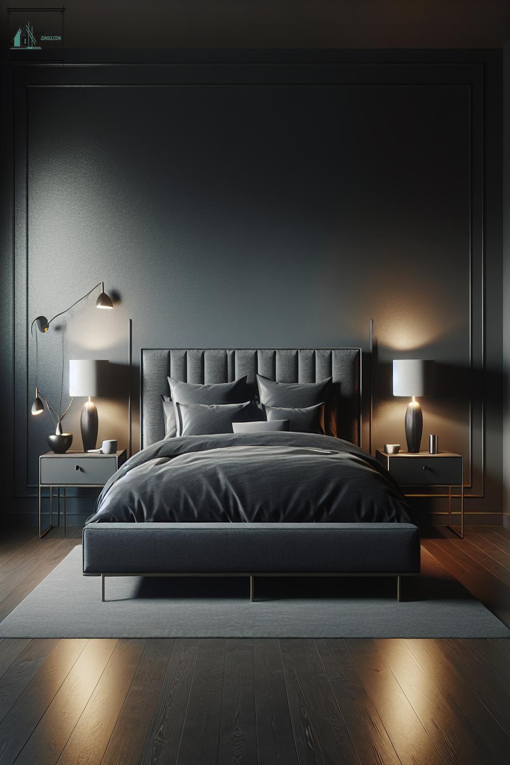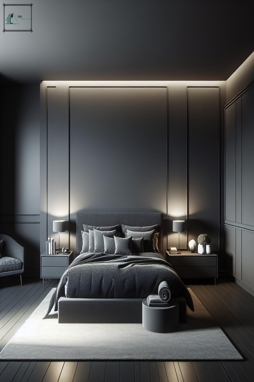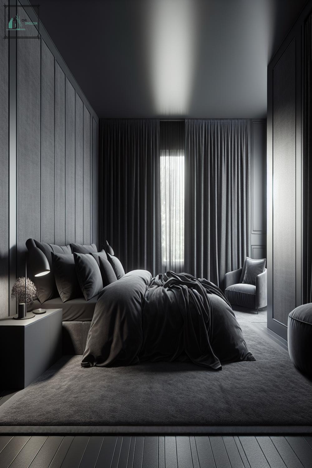 When used as a primary color in a bedroom, dark grey creates a feeling of luxury and opulence. Its deep and rich appearance adds depth and character to the space, making it feel more upscale and refined.