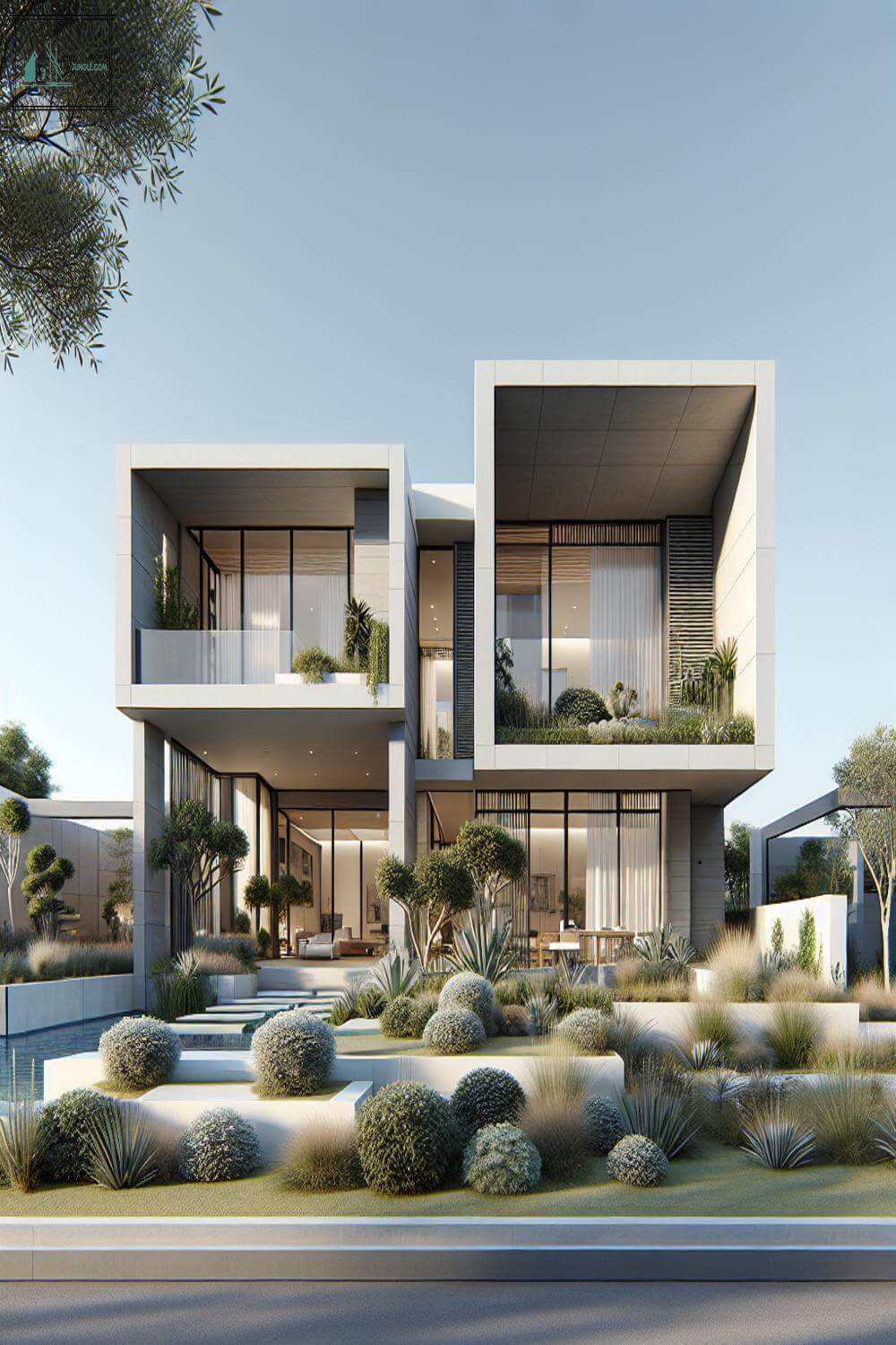 Modern villa exteriors are designed to complement and blend with the natural surroundings. This could include incorporating native plants, natural stones, and other local materials into the design.