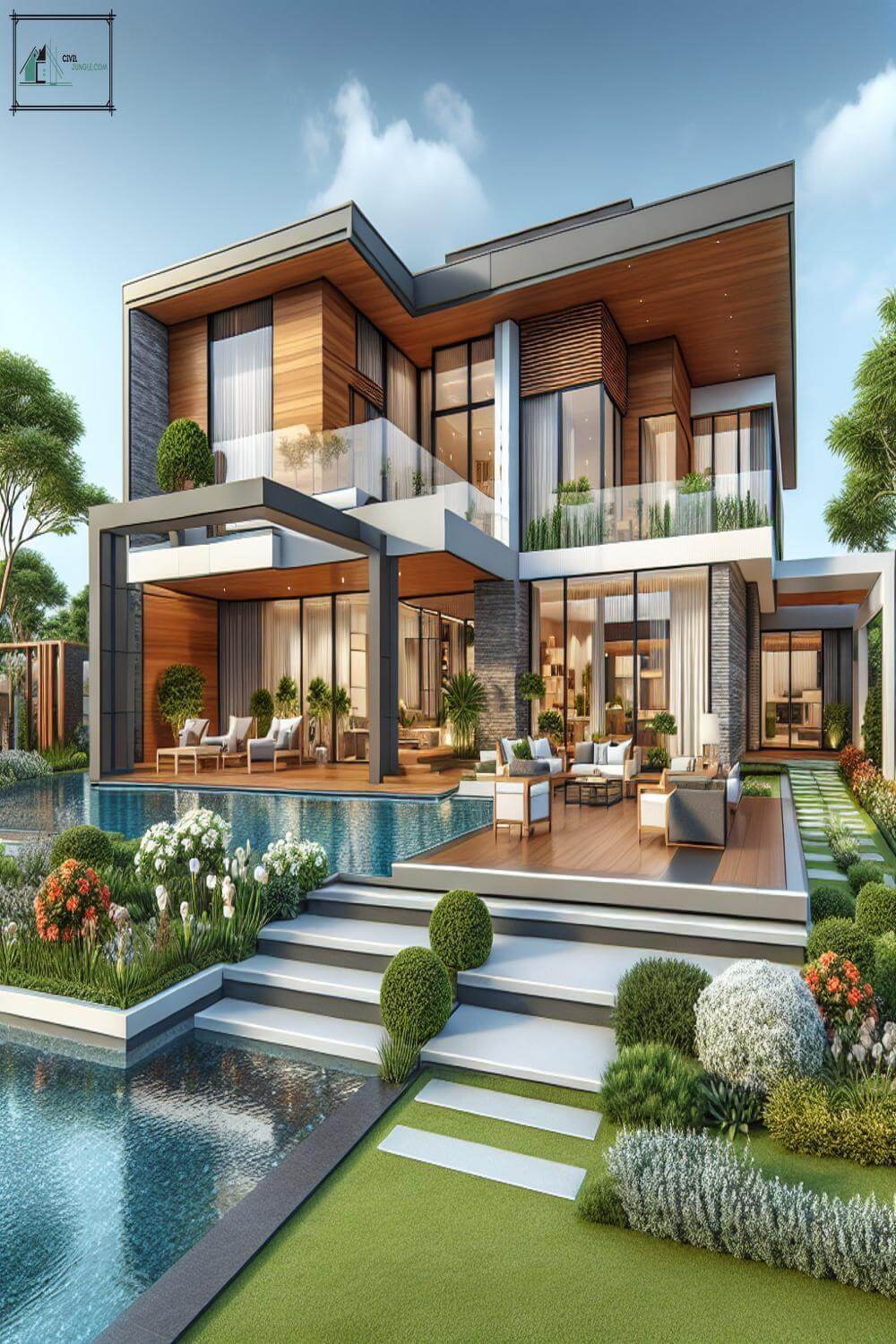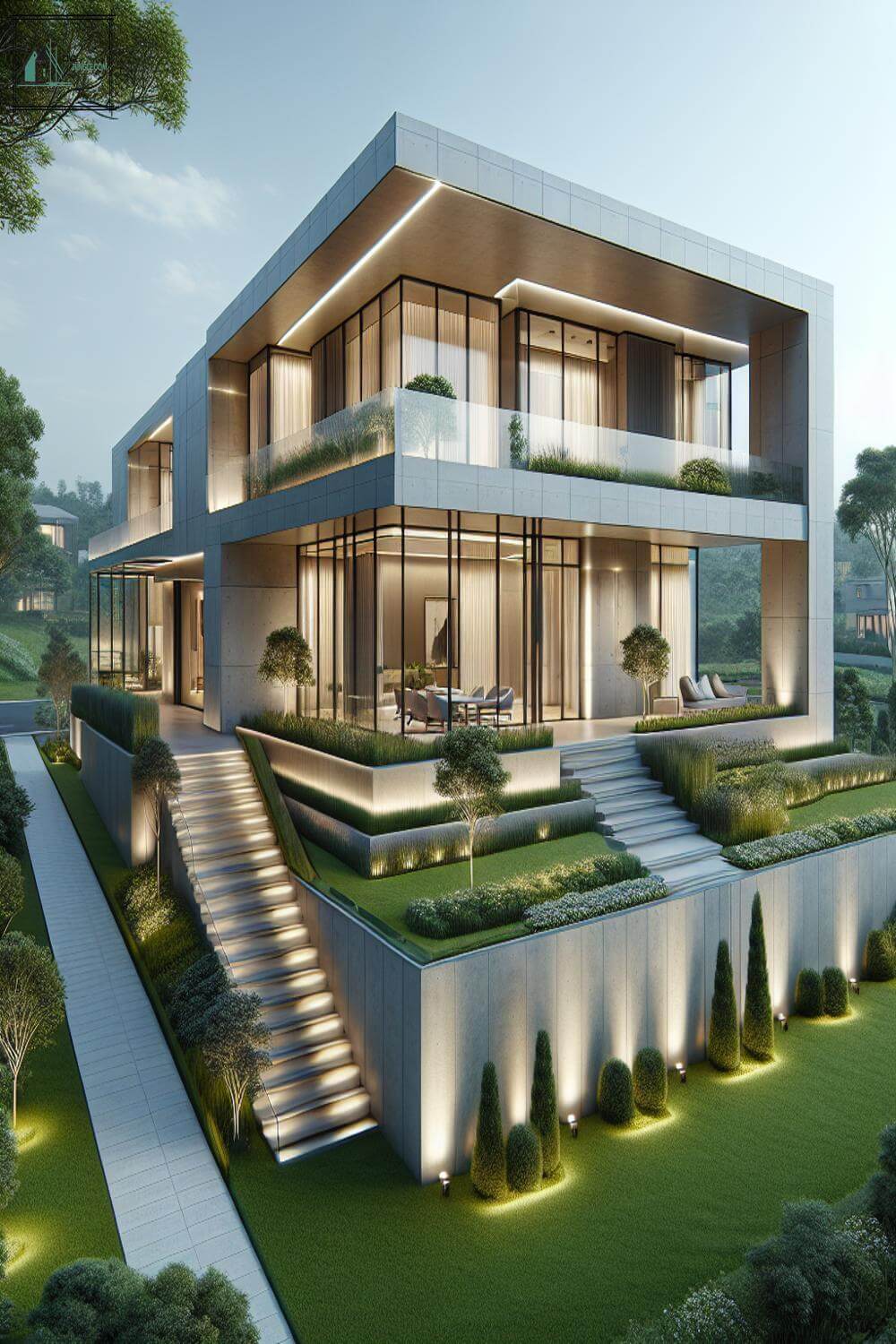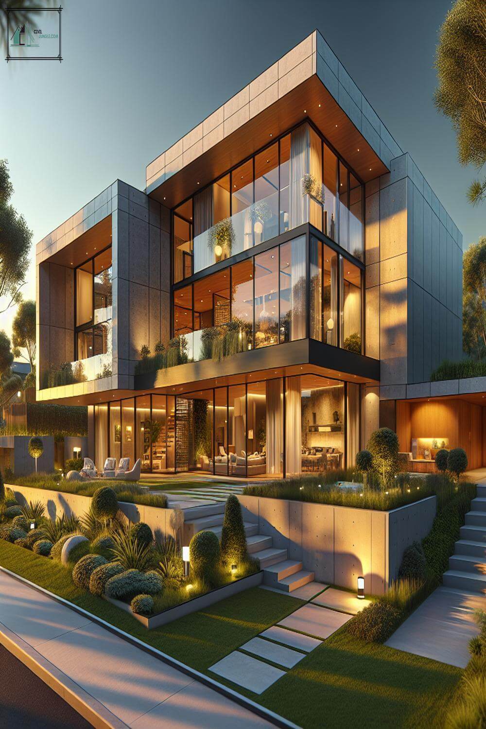 For example, a villa may have a concrete base, large floor-to-ceiling windows made of glass, and a metal or wooden cladding on the upper levels. This mix of materials creates a dynamic and modern look.