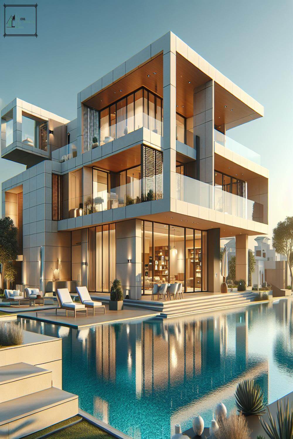 One of the defining characteristics of modern villas is the use of clean lines and geometric shapes.