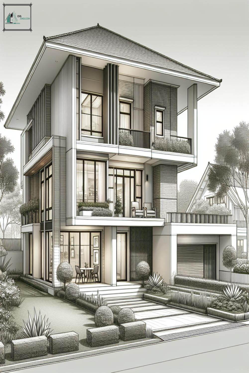 In addition, this house design also includes a spacious and well-landscaped backyard, perfect for outdoor activities and relaxation. The backyard can also accommodate a swimming pool or a garden, depending on the owner’s preference.